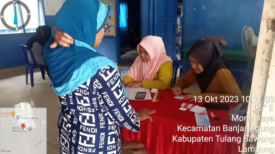 Dalam kegiatan ini sebagian besar pasien yang datang untuk berobat masih tetap ibu-ibu lansia dan ibu-ibu rumah tangga. Tujuan dari kegiatan ini ialah selain membantu para warga kampung Moris Jaya yang ingin berobat yaitu supaya bidan Desa Kampung Moris Jaya bisa selalu memantau kesehatan warga Kampung Moris Jaya khusus nya para lansia setiap minggu nyaagar bisa selalu terpantau kesehatan nya.