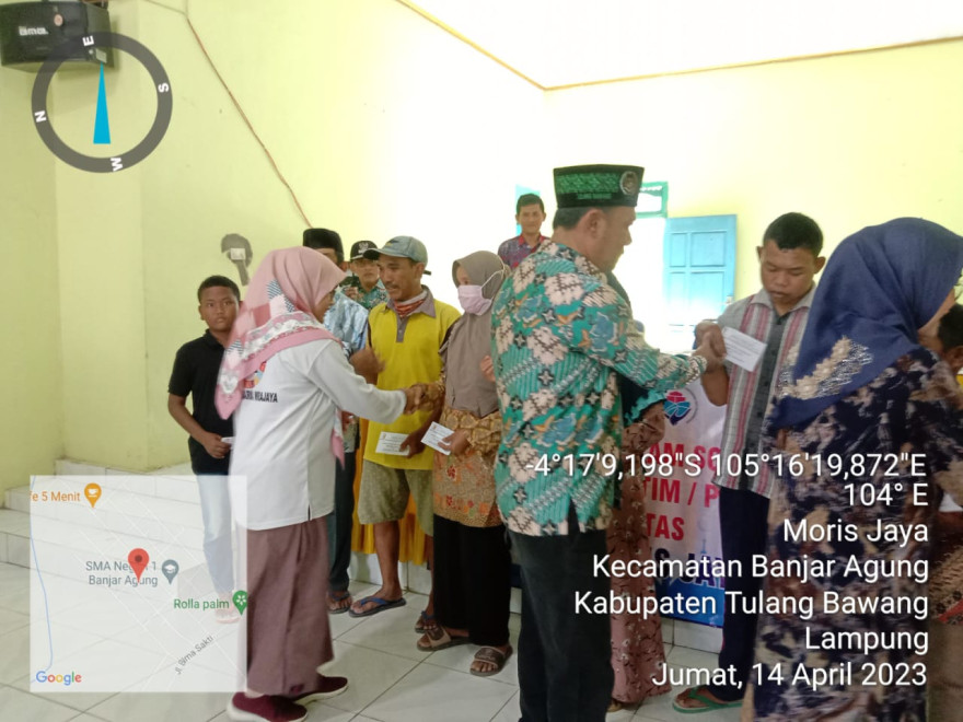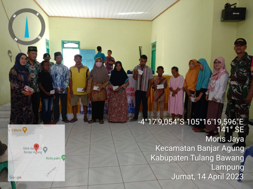 Jum'at, 14 April 2023 | Jum'at berkah bersama Aparatur Kampung Moris Jaya, penyaluran santunan anak Yatim/Piatu dan Disabilitas di kampung Moris Jaya yang di lakukan di Balai Kampung Moris Jaya.