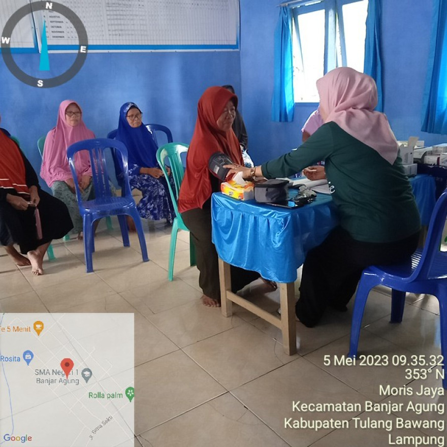Dalam kegiatan ini sebagian besar pasien yang datang untuk berobat ialah ibu-ibu lansia. Tujuan lain dari kegiatan ini ialah selain membantu para warga kampung Moris Jaya yang ingin berobat yaitu supaya bidan Desa Kampung Moris Jaya bisa sekaligus memantau kesehatan warga Kampung Moris Jaya khusus nya para lansia setiap minggu nya.