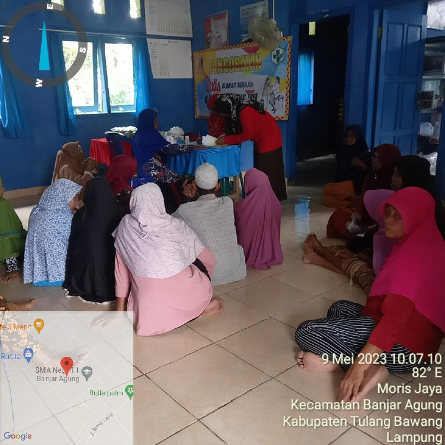 Selasa, 09 Mei 2023 | Hari ini di Kampung Moris Jaya melakukan kegiatan Posyandu Lansia bersama UPTD Puskesmas Tulang Bawang 1, Bidan Desa dan Kader Desa.