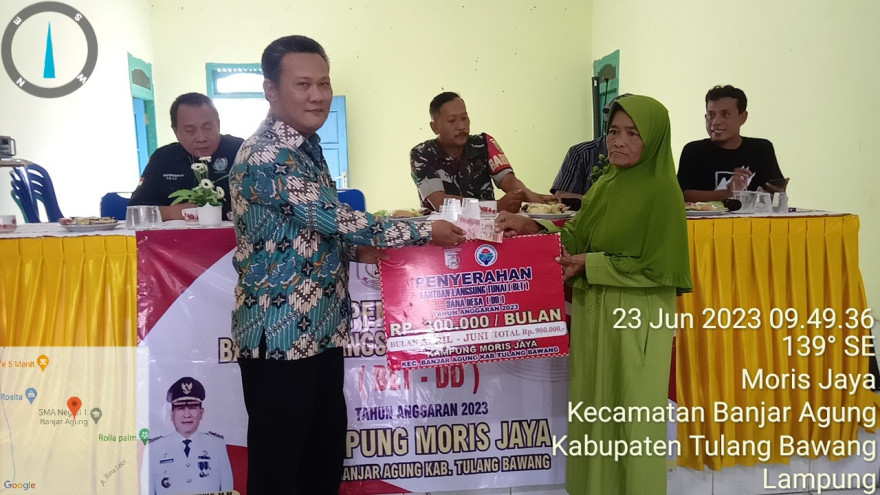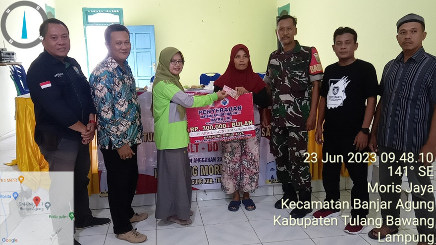 Jum'at, 23 Juni 2023 | Penyerahan Bantuan Langsung Tunai ( BLT ) DD Tahun 2023 Kampung Moris Jaya dari bulan April - Juni kepada 30 KPM penerima.