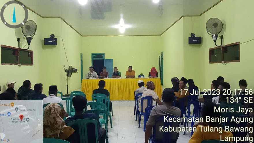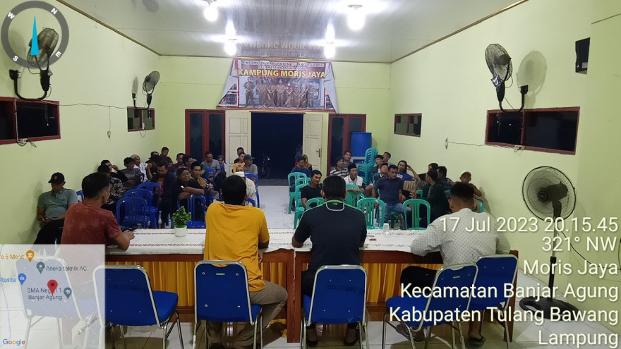 Acara di mulai pada pukul 19:30 WIB di awali dengan kata sambutan dari Bapak Kepala Kampung Moris Jaya dilanjut dengan acara utama yaitu musyawarah membahas kegiatan dan pembetukan panitia memperingati hari Kemerdekaan RI ke-78.