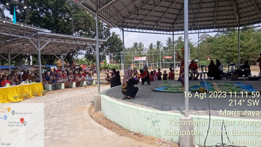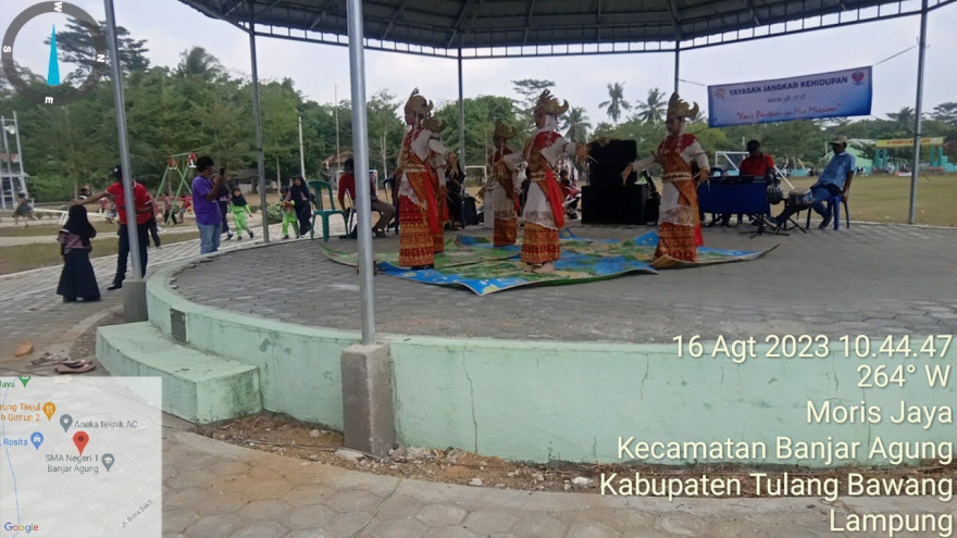 lampung sekaligus untuk menyambut tamu pada hari ini yaitu tamu dari Yayasan Jangkar Kehidupan dari Jakarta, dan di lanjutkan dengan seni tari Bali dari sanggar tari yang ada di RK 5 Kampung Bali Kampung Moris Jaya.