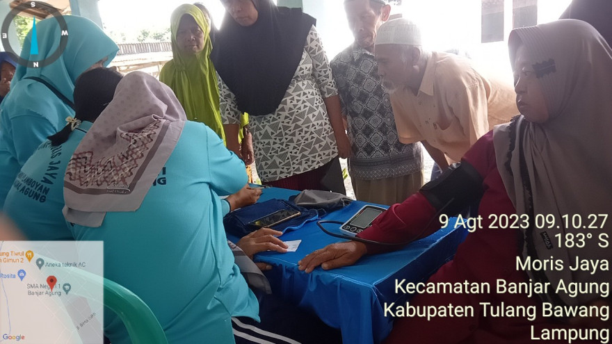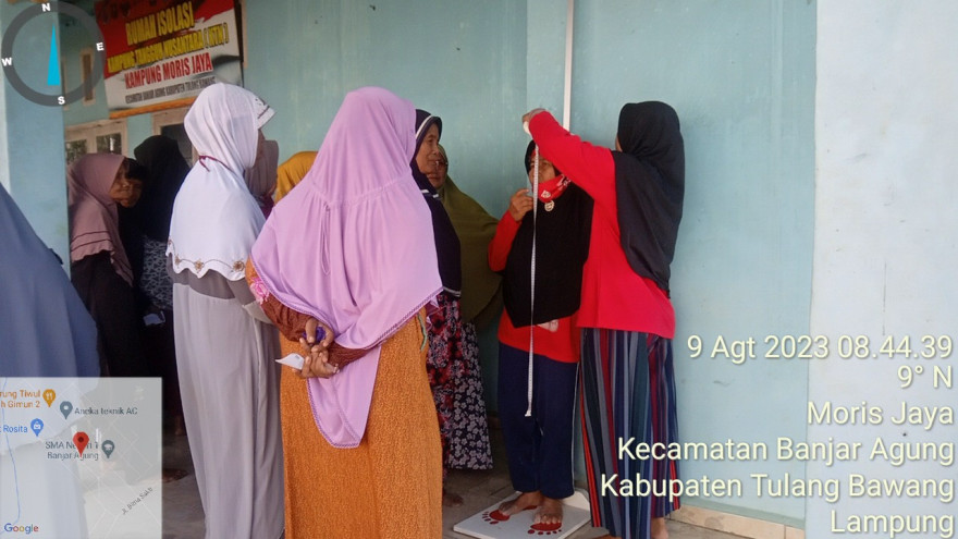 Rabu, 09 Agustus 2023 | Kegiatan hari ini ialah kegiata Posyandu Lansia di gedung Posyandu Melati di Kampung Moris Jaya bersama UPTD Puskesmas Tulang Bawang 1 dan para kader kampung Moris Jaya.