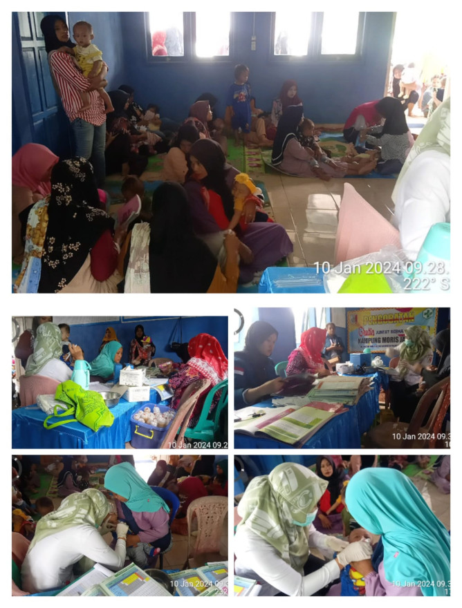 Rabu, 10 Januari 2024 | Kegiatan Posyandu balita Kampung Moris Jaya, kegiatan rutin bulanan bekerjasama dengan Tim Kesehatan dari UPTD Puskesmas Tulang Bawang 1dan di bantu juga oleh Mahasiswa KKN dari UNILA. Kegiatan ini di dilaksanakan di Gedung Posyandu Melati kampung Moris Jaya.