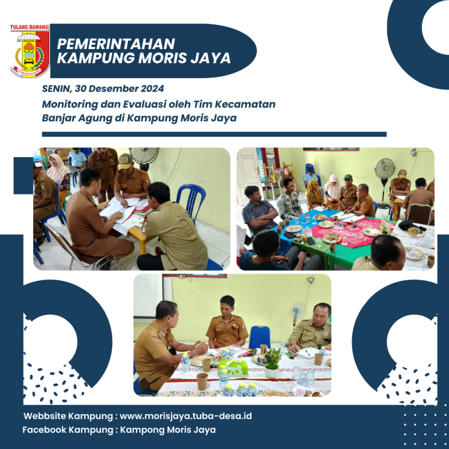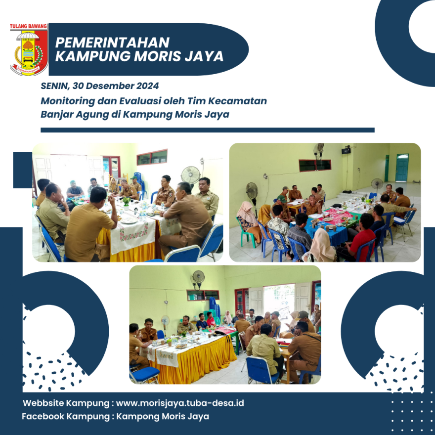 Kampung Moris Jaya, Senin, 30 Desember 2024 – Tim Monitoring dan Evaluasi (Monev) dari Kecamatan Banjar Agung melaksanakan kunjungan kerja ke Kampung Moris Jaya untuk meninjau pelaksanaan berbagai program pembangunan dan administrasi desa. Acara yang berlangsung di Balai Kampung Moris Jaya ini dimulai pukul 13.00 WIB dan dihadiri oleh berbagai pihak terkait.