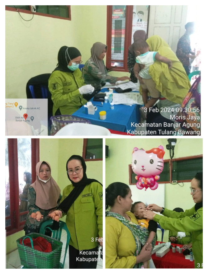Giat ini adalah hasil kerjasama Aparat Pemerintah Kampung Moris Jaya dengan UPTD Puskesmas Tulang Bawang 1, PKK Kampung Moris Jaya, dan para Kader Posyandu Balita dan Lansia.