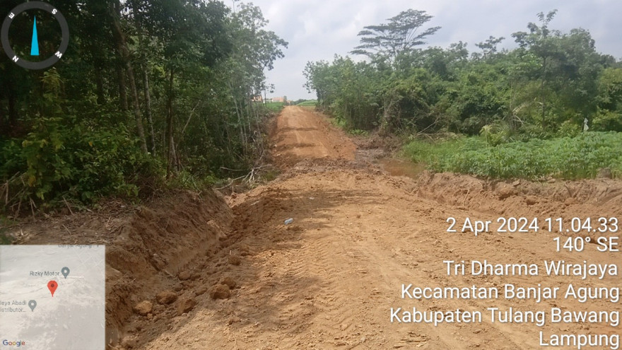 Pengerjaan pembentukan badan jalan akses peladangan di Rw.002 Kampung Moris Jaya sekaligus jalan trobosan ke Desa Tri Mukti Jaya sudah mulai dikerjakan pada tanggal 30 Maret 2024 kemarin dengan sumber dana yaitu Dana Desa ( DD ) Tahun 2024.