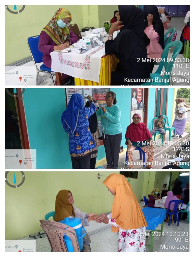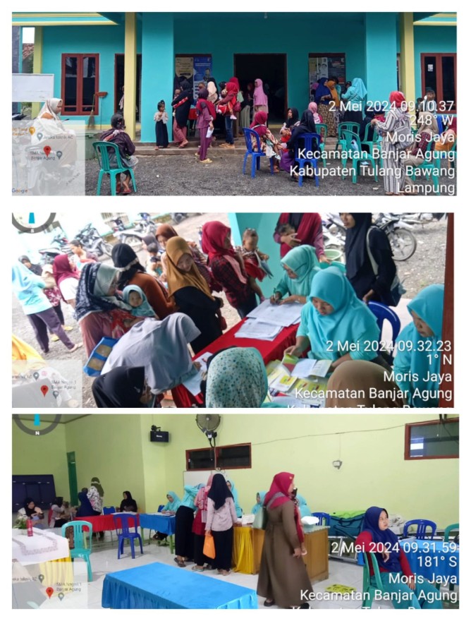 Kamis, 02 Mei 2024 | Kegiatan posyandu pada awal bulan Mei yaitu Posyandu Balita, Ibu Hamil, dan Lansia di Kampung Moris Jaya yang di adakan pada hari ini bekerjasama dengan petugas dari UPTD Puskesmas Tulang Bawang 01 di mulai pada pukul 09:00 WIB sampai dengan selesai.