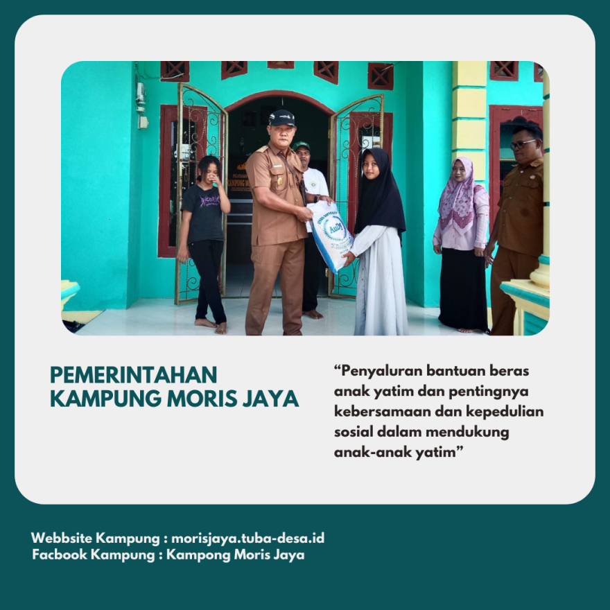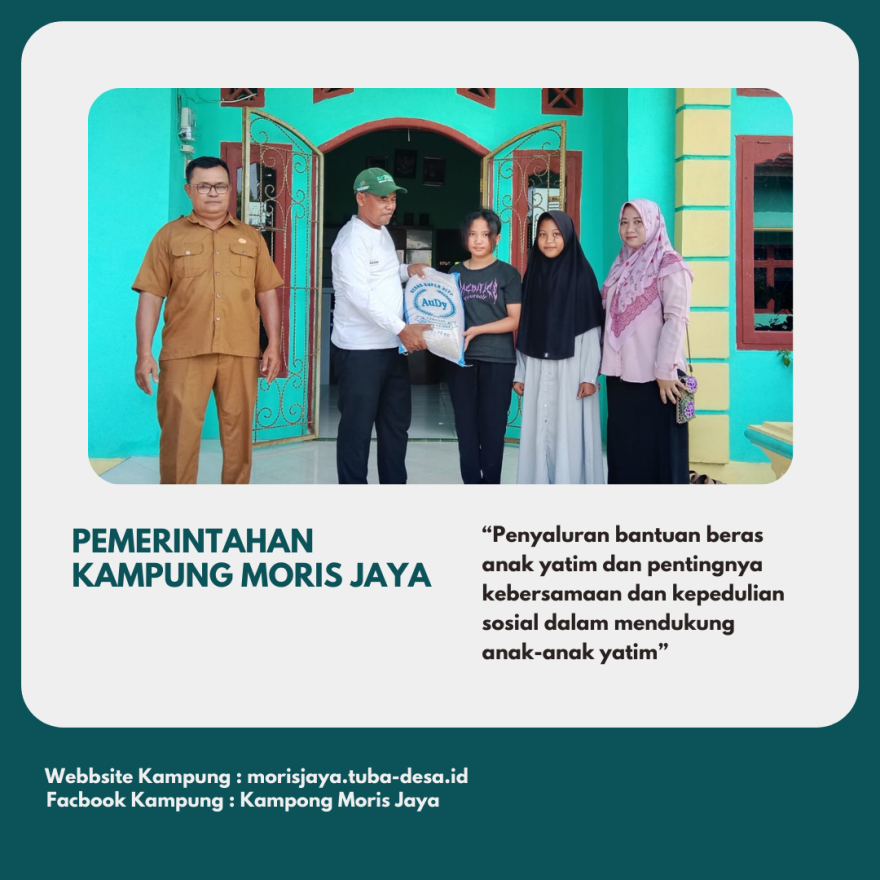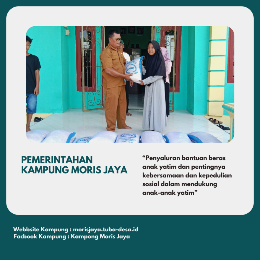Pada hari Senin, 24 Juni 2024, Kampung Moris Jaya melaksanakan kegiatan penyaluran beras untuk anak yatim. Acara yang dimulai pada pukul 10:00 WIB ini dihadiri oleh berbagai tokoh masyarakat dan berlangsung dengan khidmat.