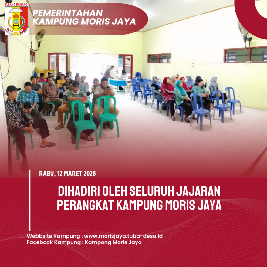Pada hari Rabu, 12 Maret 2025, Kampung Moris Jaya menggelar Musyawarah Kampung untuk menetapkan Anggaran Pendapatan dan Belanja Kampung (APBKAM) Tahun 2025. Acara yang berlangsung di Gedung Balai Kampung Moris Jaya ini dimulai pada pukul 09:00 WIB dan dihadiri oleh seluruh jajaran perangkat desa.