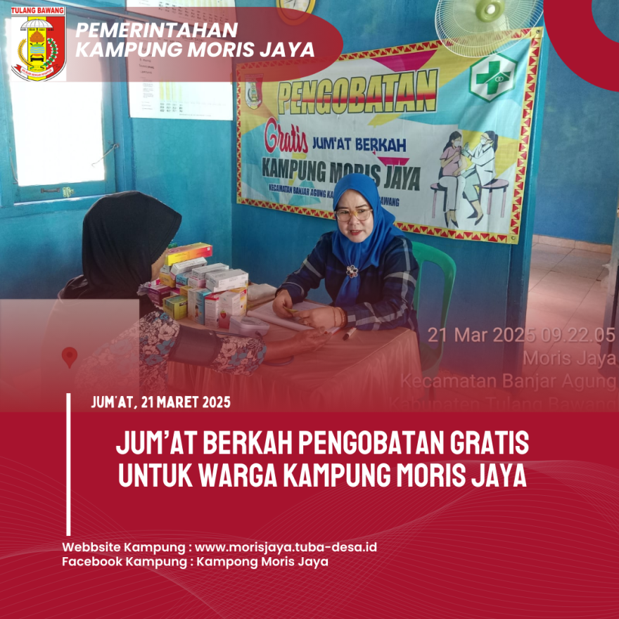Kampung Moris Jaya, 21 Maret 2025 — Suasana penuh kepedulian dan kebersamaan tampak di Gedung Posyandu Melati Kampung Moris Jaya pada Jumat pagi ini. Kegiatan rutin Jumat Berkah kembali digelar dengan memberikan pelayanan pengobatan gratis bagi warga setempat. Kegiatan ini dimulai pukul 09:00 WIB dan berlangsung hingga selesai.