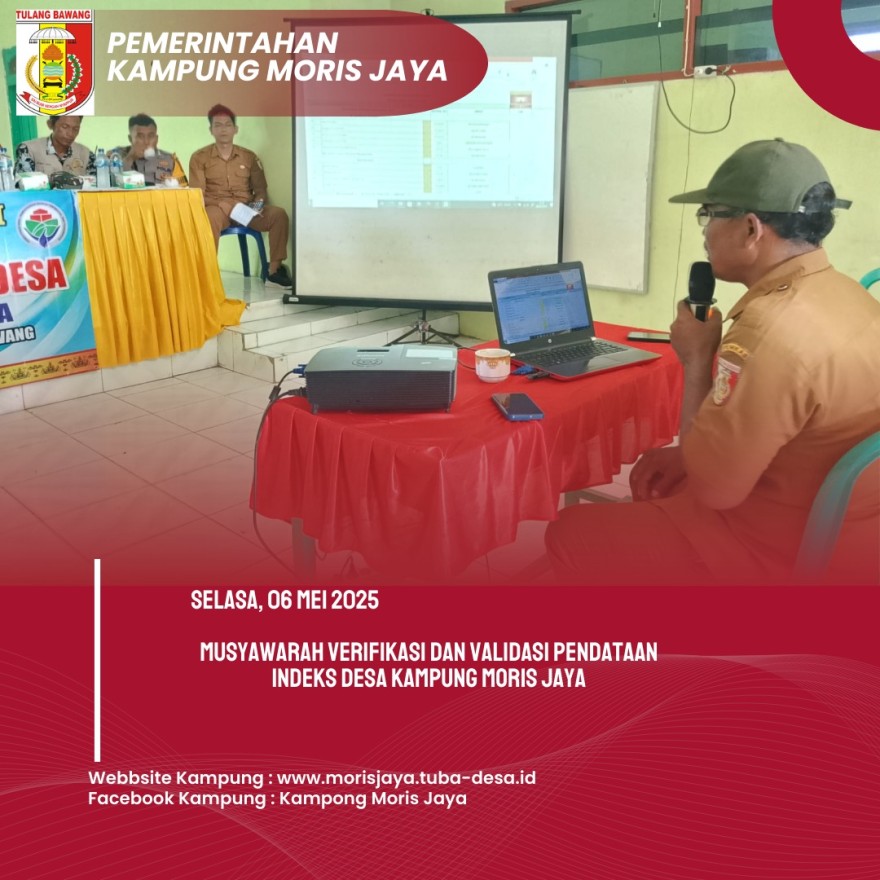 Agenda pertama Musdesus adalah verifikasi dan validasi pendataan Indeks Desa Kampung Moris Jaya. Kegiatan ini bertujuan untuk memastikan data terkait kondisi pendidikan, kesehatan, ekonomi, dan infrastruktur desa akurat dan terkini. Data yang valid akan menjadi dasar dalam perencanaan pembangunan dan penyaluran bantuan sosial yang tepat sasaran.