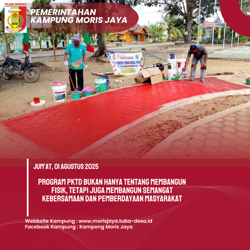Dengan semangat gotong royong dan dukungan Dana Desa, pengecatan jogging track diharapkan dapat selesai sesuai target dan memberikan manfaat nyata bagi warga Kampung Moris Jaya. Kegiatan ini juga sekaligus menjadi bentuk nyata perhatian pemerintah kampung dalam memperindah ruang publik dan mendukung gaya hidup sehat di tengah masyarakat.