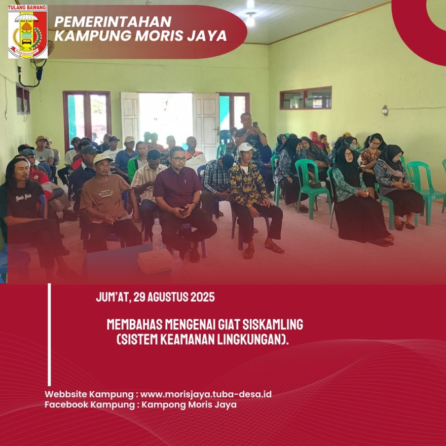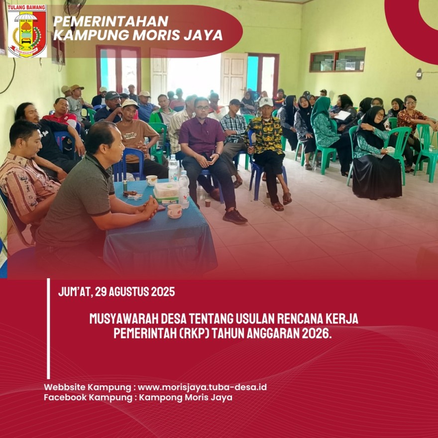 Jum’at, 29 Agustus 2025, Kampung Moris Jaya menyelenggarakan kegiatan penting berupa Musyawarah Desa (Musdes) yang berlangsung di Gedung Balai Kampung Moris Jaya. Acara dimulai pukul 08:00 WIB hingga selesai dengan agenda utama membahas tiga kegiatan strategis untuk kepentingan masyarakat.