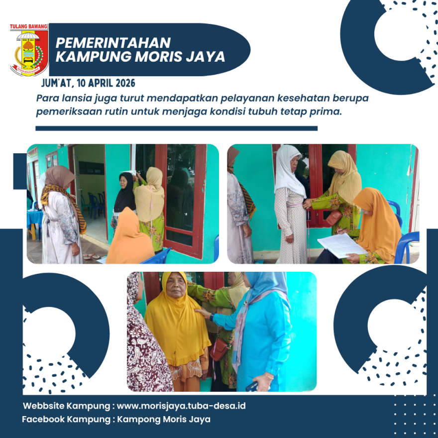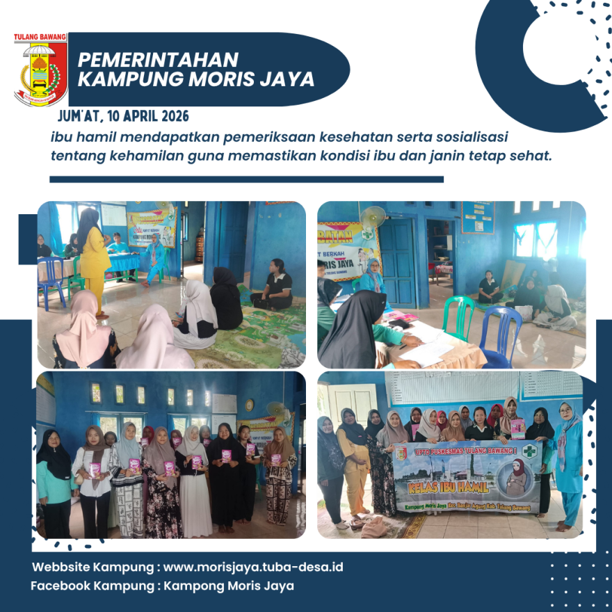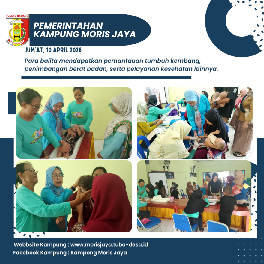 Jum’at, 10 April 2026, Pemerintah Kampung Moris Jaya kembali melaksanakan kegiatan Posyandu Integrasi yang bertempat di Gedung Posyandu Kampung Moris Jaya. Kegiatan ini berlangsung mulai pukul 09.00 WIB hingga selesai, dengan melibatkan berbagai unsur tenaga kesehatan dan kader desa.